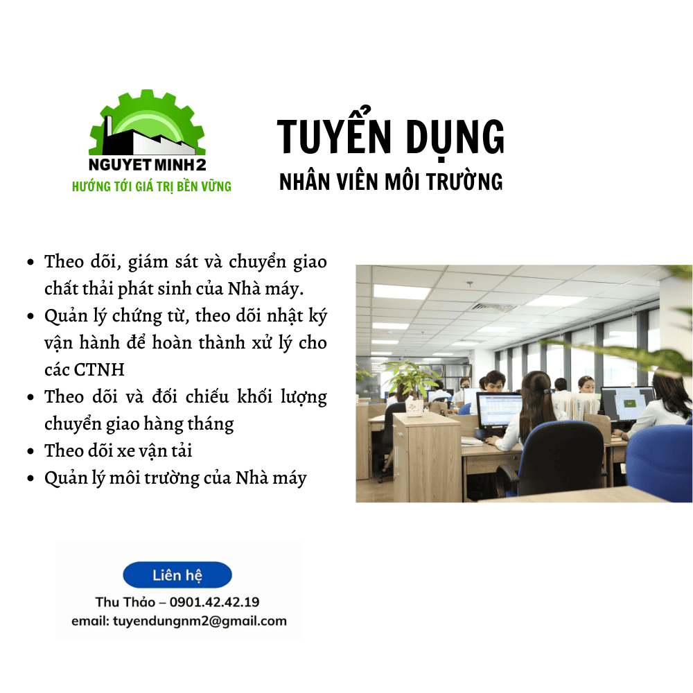 - Trình độ chuyên môn: Đại học quản lý/kỹ thuật môi trường