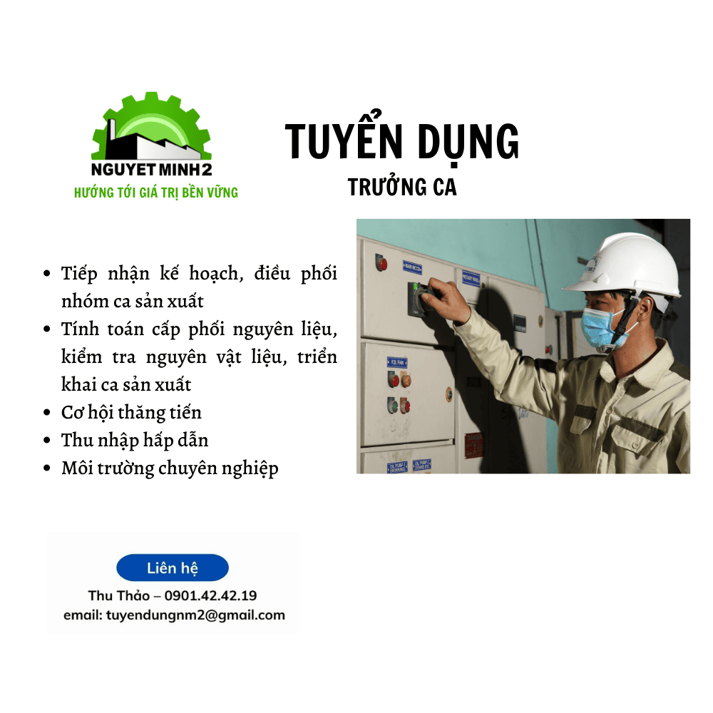 - Kinh nghiệm: Tối thiểu 01 năm làm việc trong môi trường sản xuất, ưu tiên ứng viên cùng ngành.